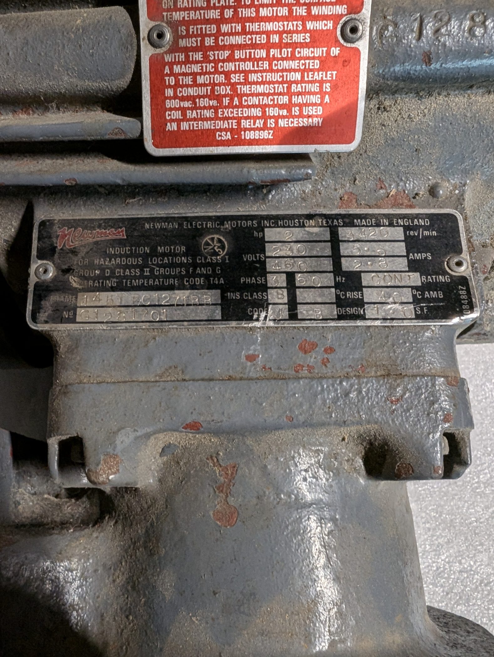 Newmans Electric Motor 2Hp G1281701 3420RPM