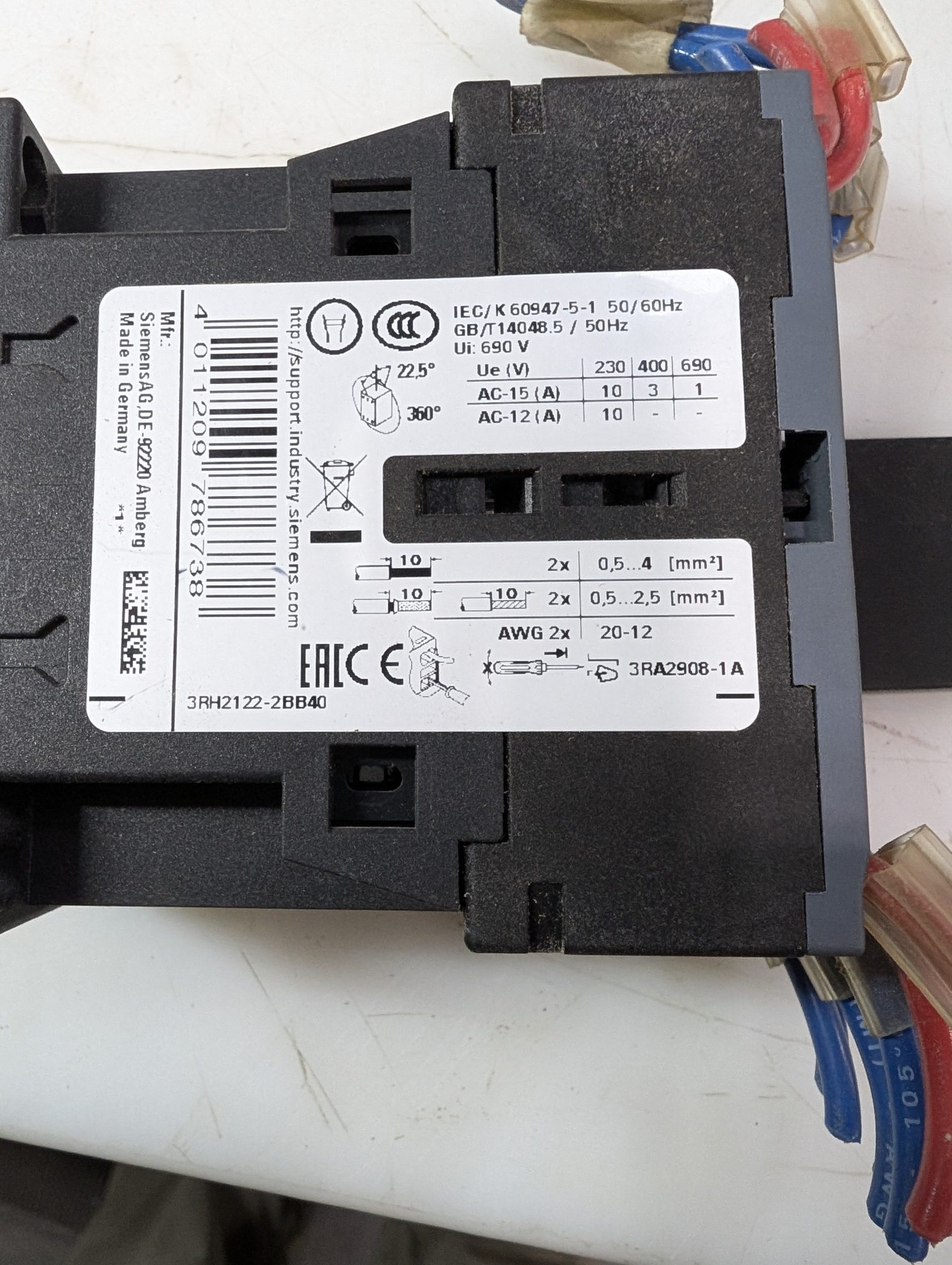 Siemens Sirius 3RT2026-2BB40 Control Contactor For Switching Loads & Currents
