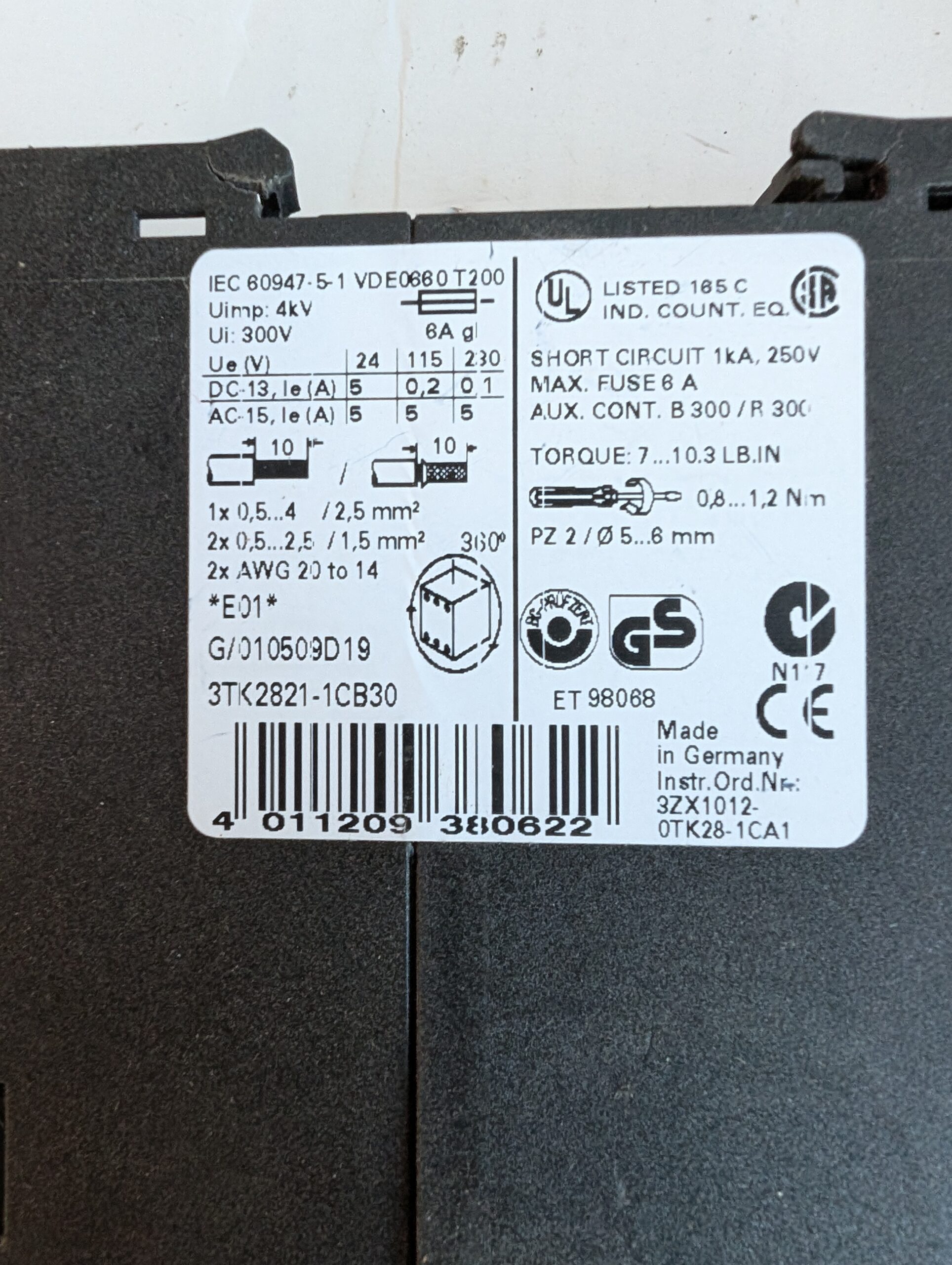 Siemens Safety Relay 3TK2821-1BCB30 300V 4KV