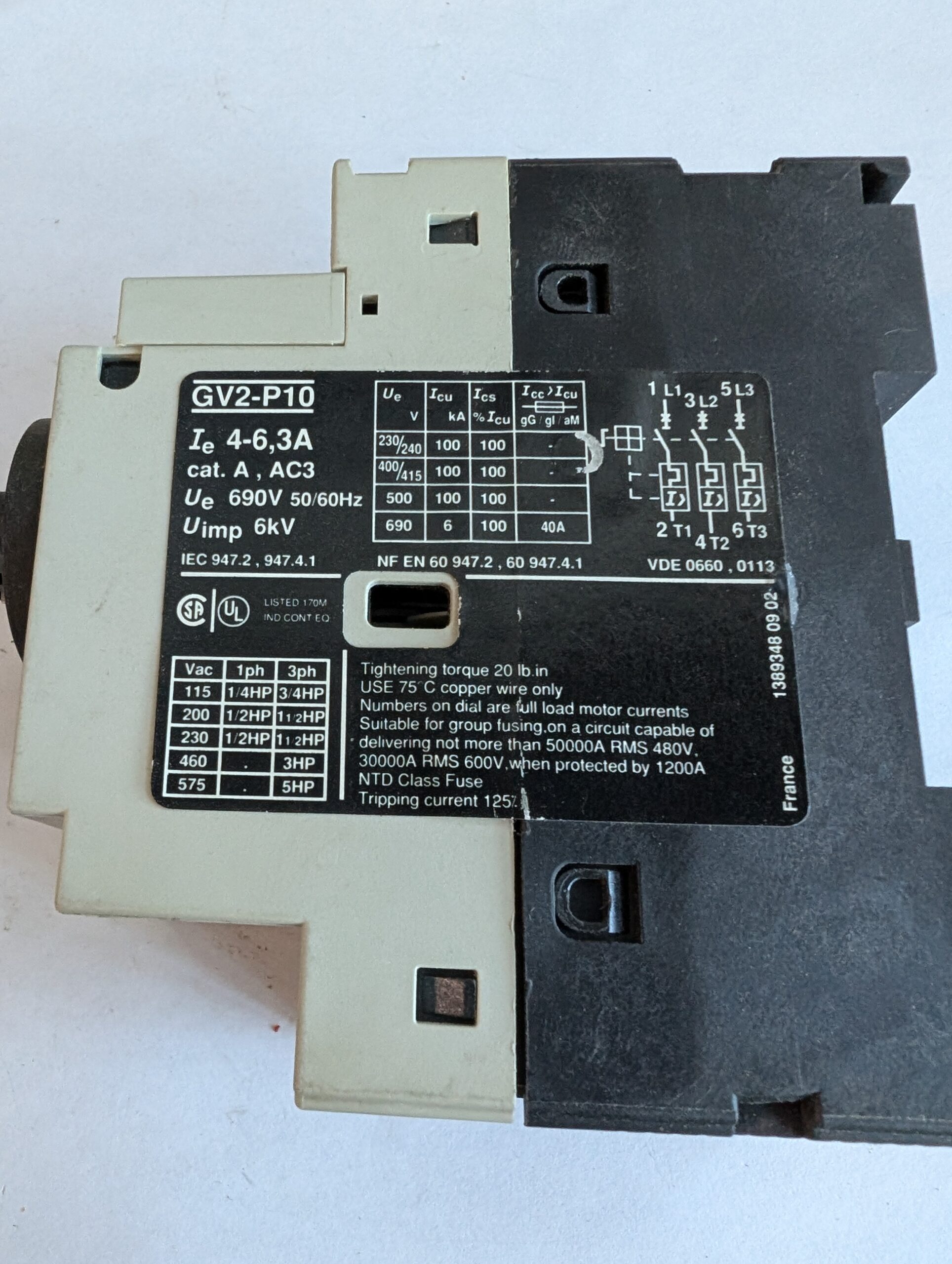 Telemecanique Manual Motor Starter GV2-P10 3.3A 690V 50-60HZ