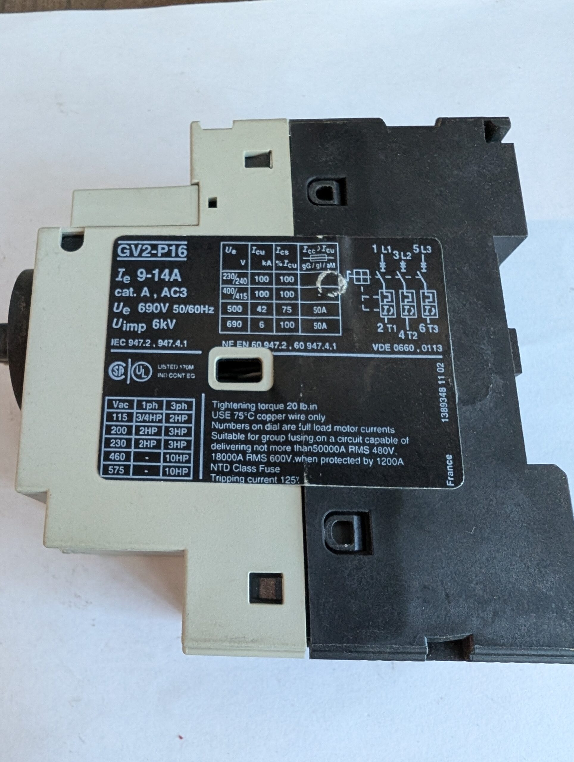 Telemecanique Manual Motor Starter GV2-P16 9-14A 690V 50-60HZ