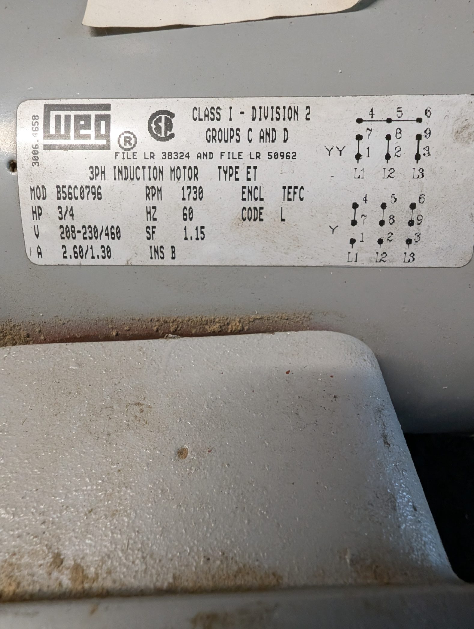 Model B56C0796, 1730RPM, 3/4 HP, 3PH Induction Style