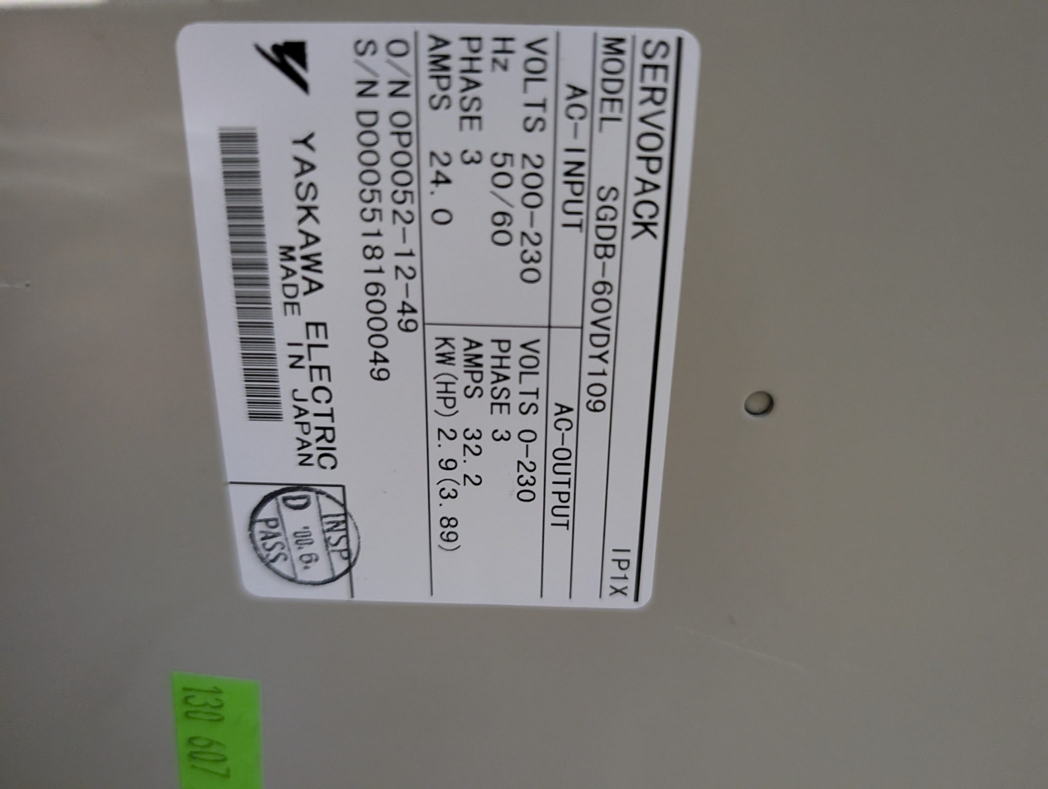 Yaskawa Servo Pack SGDB-60VDY109